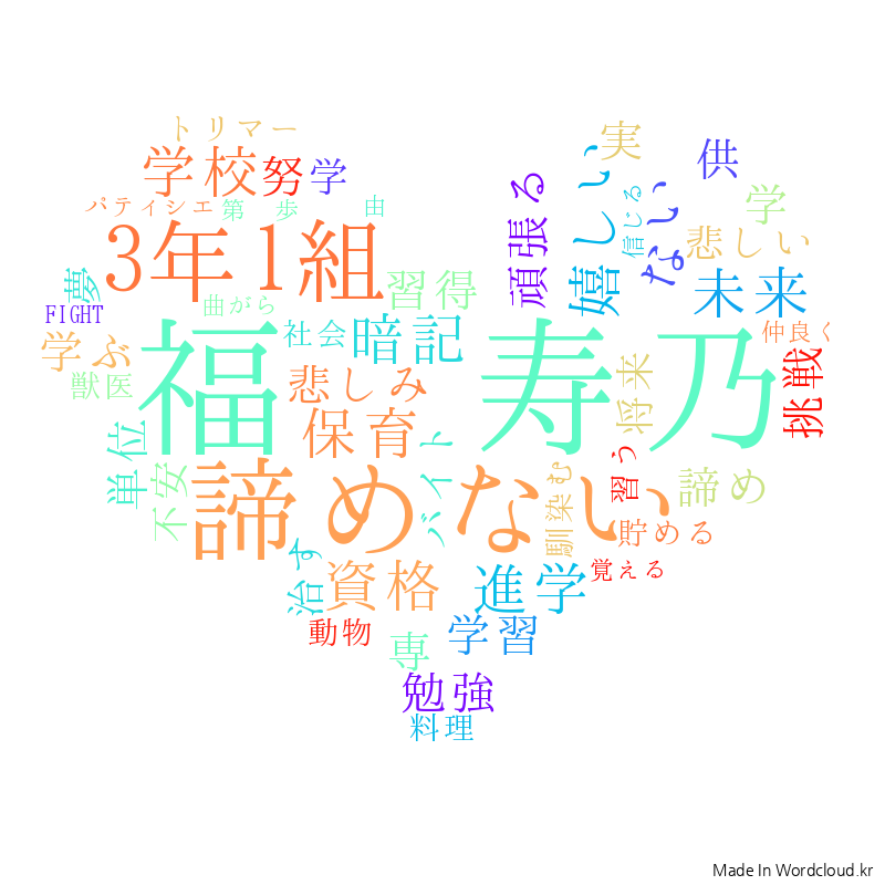 福田寿乃 諦めない 3年1組 - wordcloud